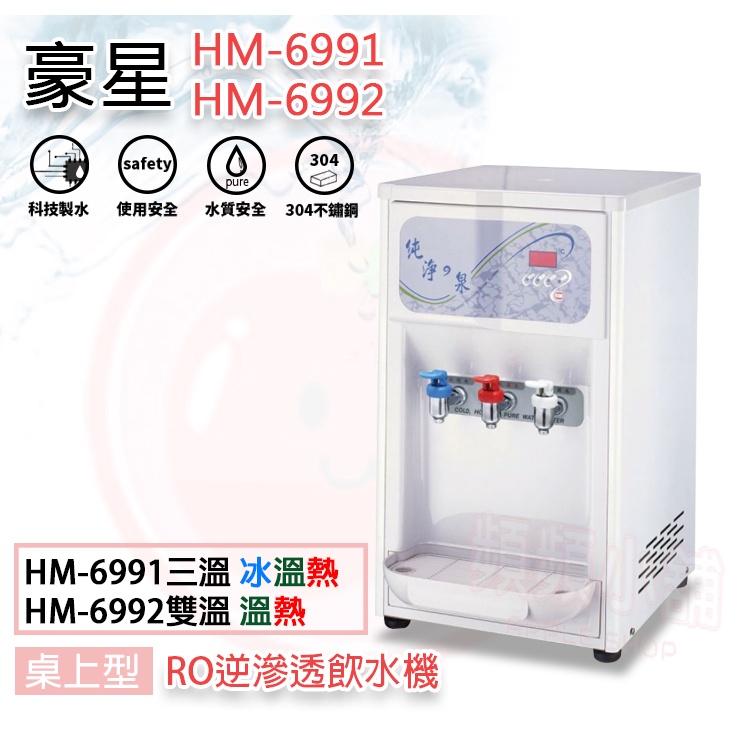 ● 型號:HM-6991桌上型RO冰溫熱三溫飲水機