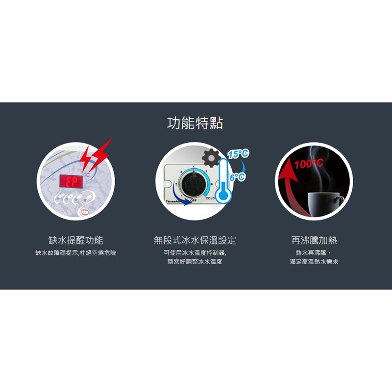 容量:熱水2.5公升、冰水1.2公升、冷水12公升